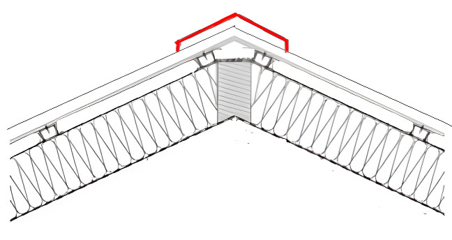 Hřeben také chrání horní hrany střešních tašek nebo jiné krytiny před poškozením větrem a povětrnostními vlivy.